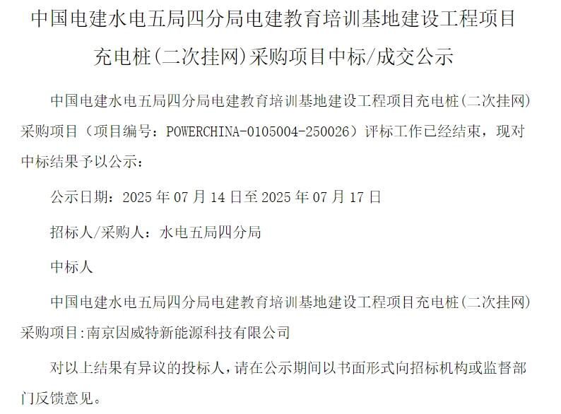 Anuncio de Adjudicación:Adquisición de pilas de carga para el proyecto de construcción de la base de educación y capacitación de China Power Construction.